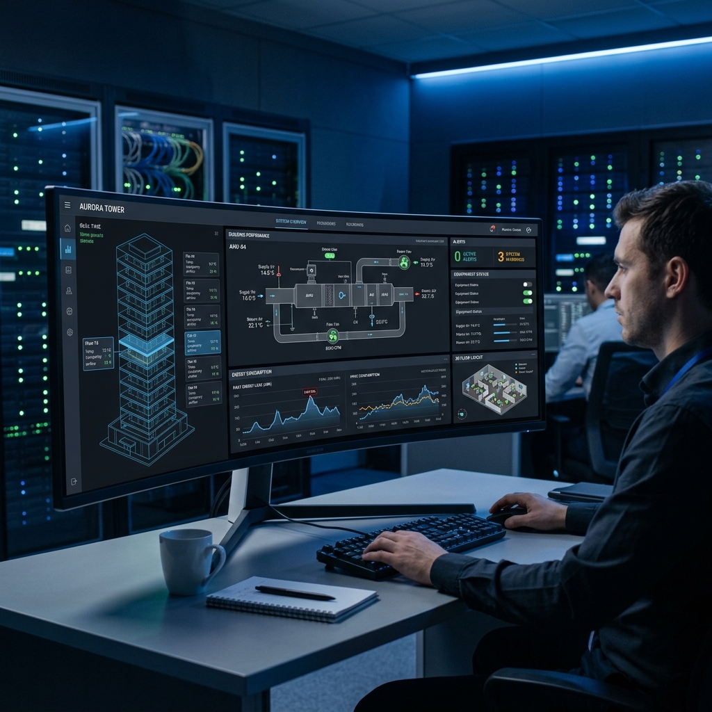 Hem mekanik hem de tüm zayıf akım/kuvvetli akım altyapılarının veri odaklı izlenmesini sağlayan üst çatı yazılımların entegrasyonu.